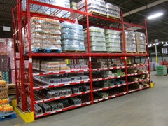 Selective rack (right) in forward pick area