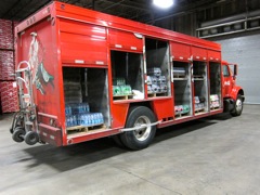 A side-load truck serves as a warehouse on wheels.